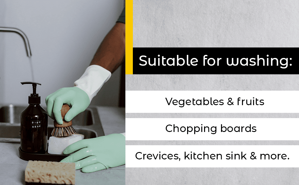 Suitable for washing vegetables & fruits; chopping boards; crevices; kitchen sink; and more.
