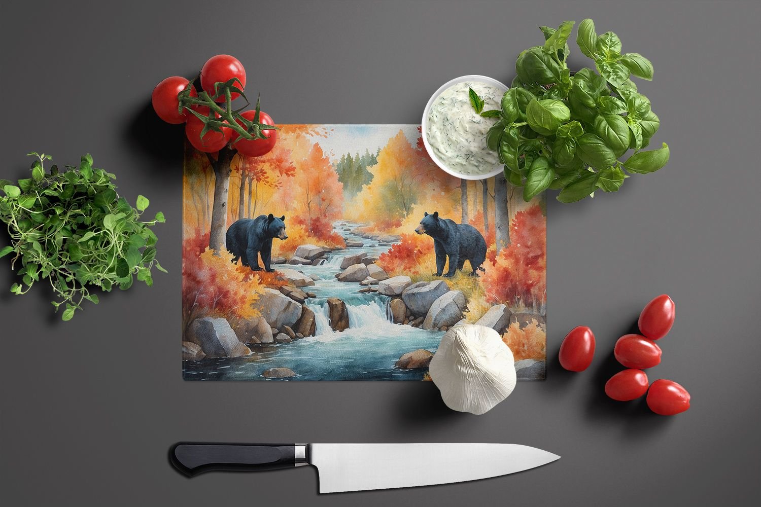 Home > Bears Autumn in the Woods Glass Cutting Board Decorative Tempered Glass Kitchen Cutting and Serving Board Large Size Chopping Board