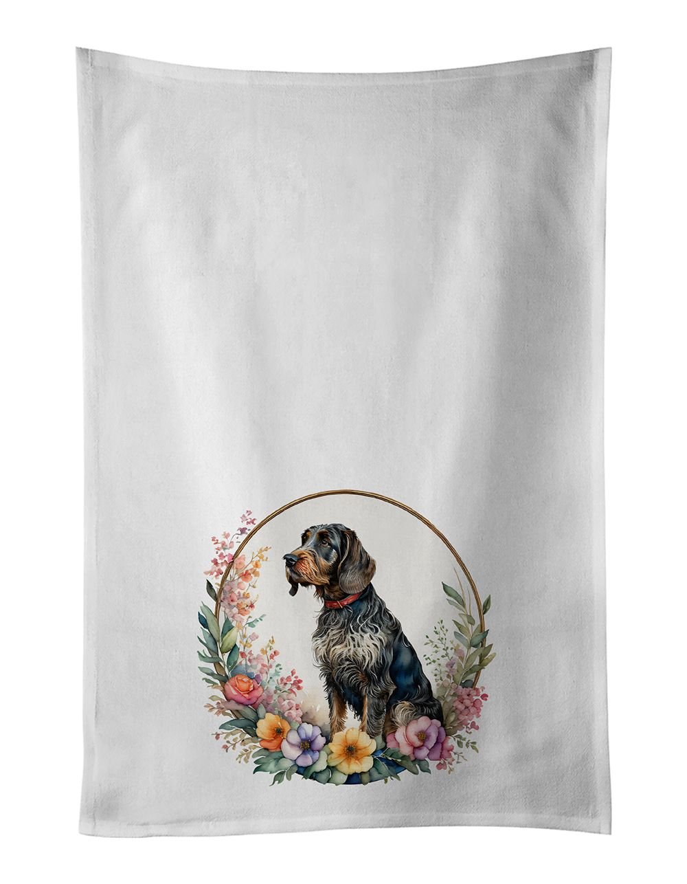 Home > German Wirehaired Pointer and Flowers Kitchen Towel Set of 2 White Dish Towels Decorative Bathroom Hand towel for Hand, Face, Hair, Yoga, Tea