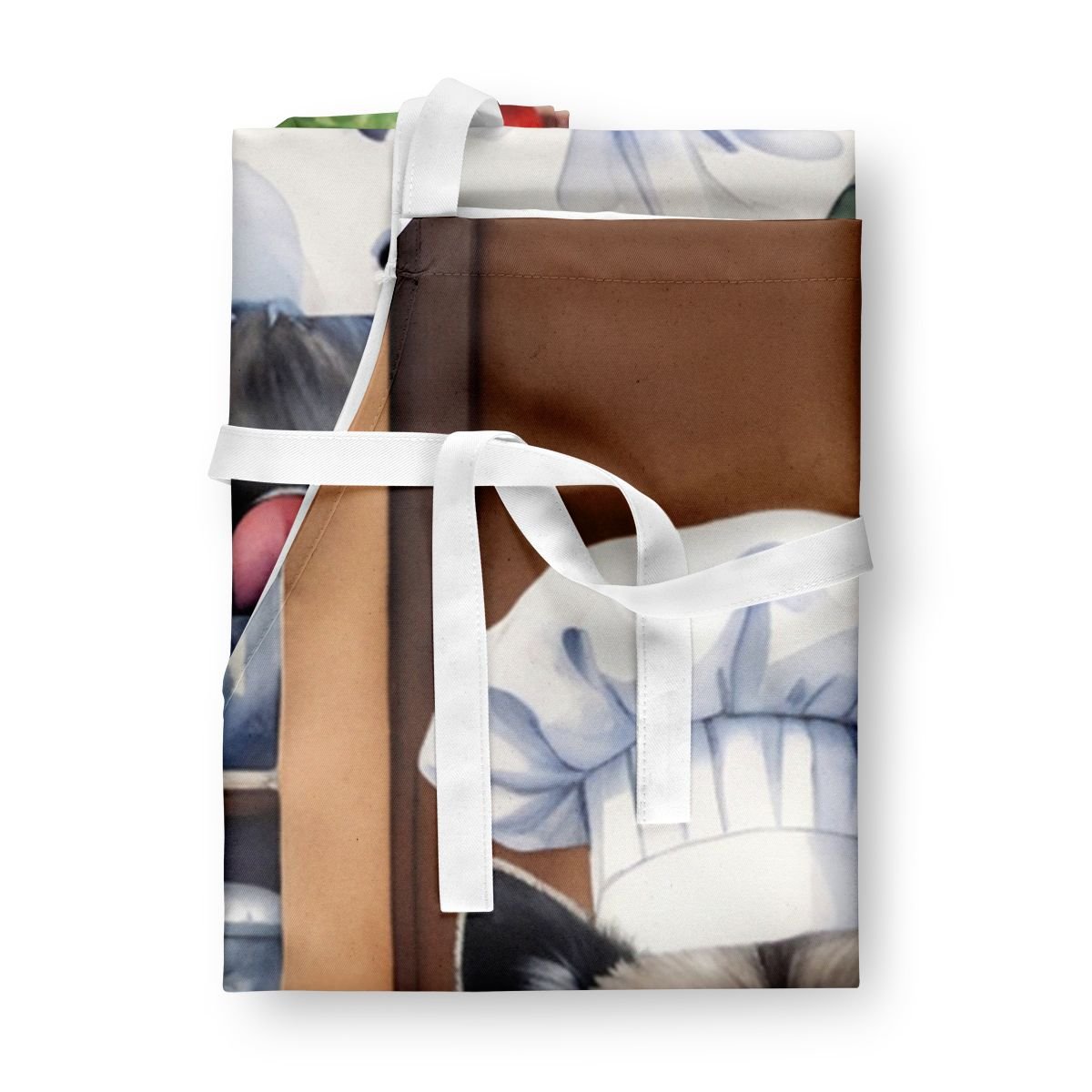 Apron featuring breed specific Keeshond artwork. Elevate your cooking, baking, and grilling experiences with our versatile Kitchen or BBQ Apron. This Bib Style apron isn't just limited to culinary activities - it also serves as an excellent baking apron, artist apron, server apron, gardening apron, or even a dog grooming apron. The apron showcases vibrant full-color artwork contributed by one of our talented artists, bringing a dash of style to your daily tasks. With dimensions of approximately 27"W x 30"H, it provides ample coverage to protect your clothing from spills and splashes. Our apron is meticulously crafted from 100% Ultra Spun Polyester, known for its durability and lightweight nature. The apron comes with white tie straps, ensuring a comfortable and adjustable fit for all. It's a perfect choice for kitchen apron enthusiasts, whether you are a woman or a man. Designed for easy maintenance, this apron is fully machine washable. The quick-drying polyester material actively reduces staining, keeping your apron looking fresh and new for longer. Our beautifully designed apron isn't just a functional kitchen accessory - it's a fashion statement in the culinary world!
