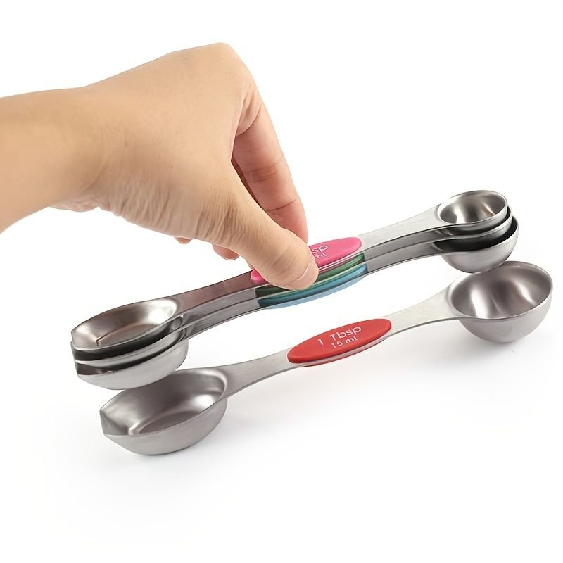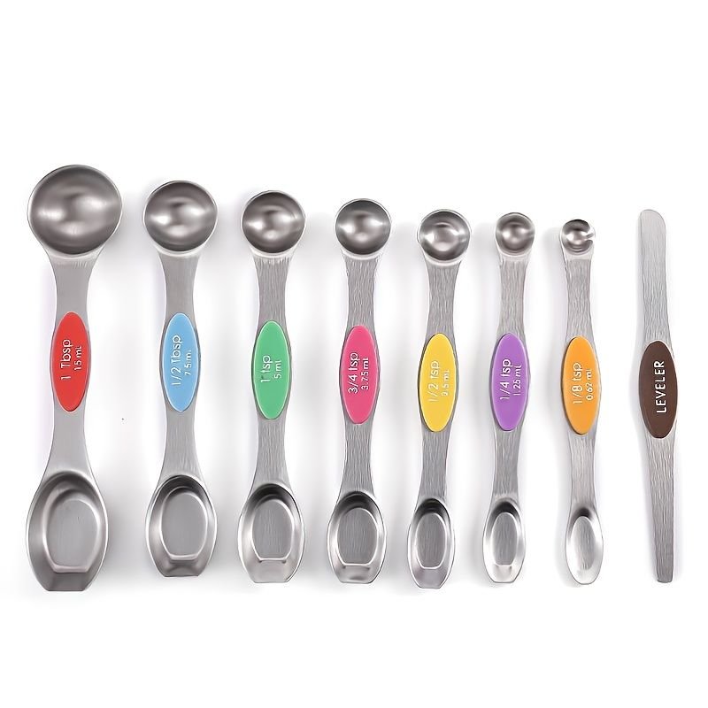 Home > Set Of 8; Magnetic Measuring Spoon Set; Double Sided Stainless Steel Measuring Spoons; Fits In Spice Jars; Stackable Teaspoons; For Measuring Dry And