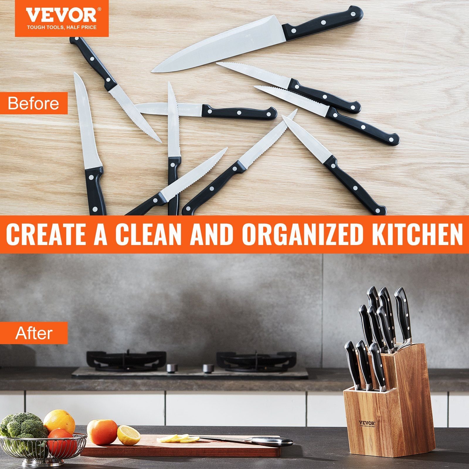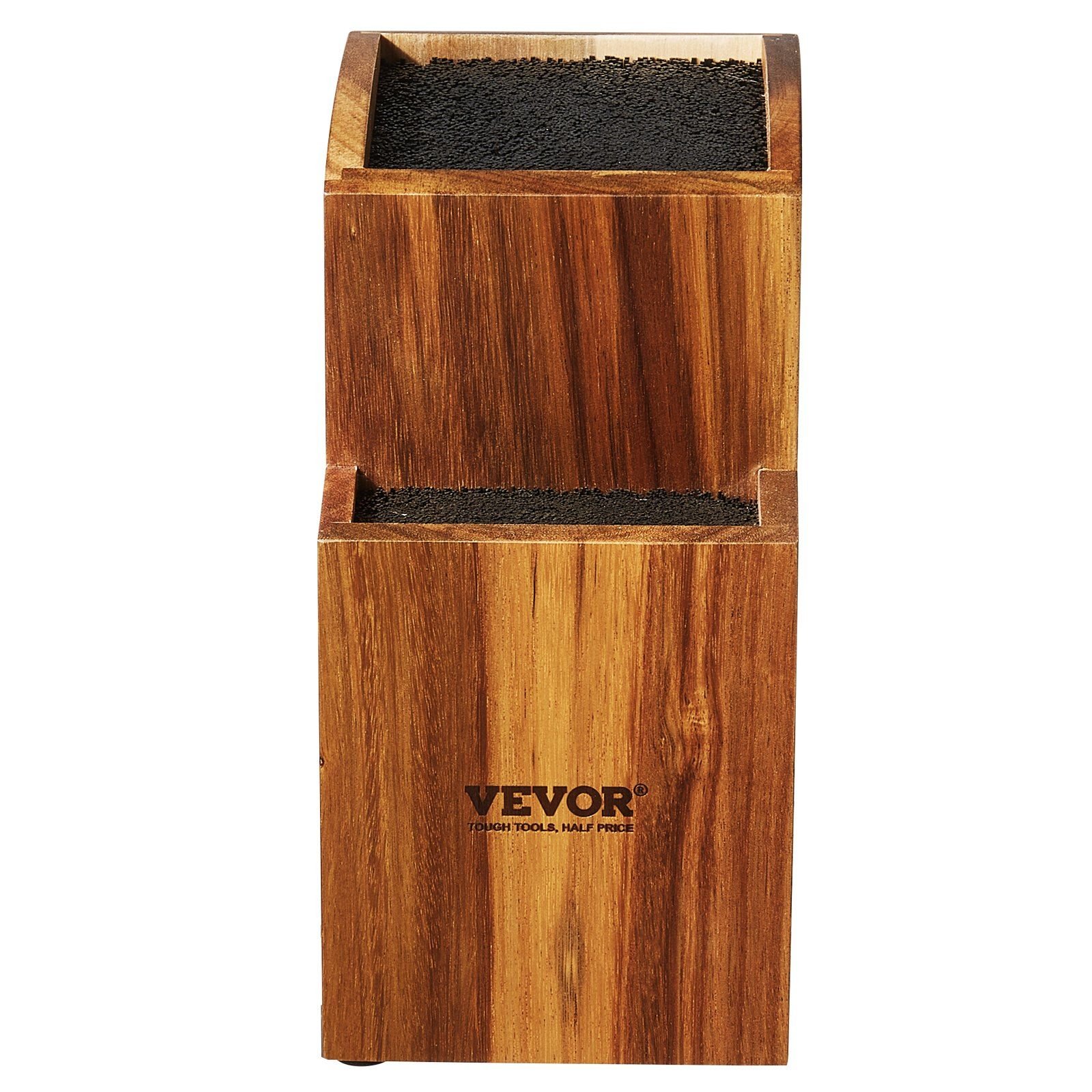 Home > VEVOR Universal Knife Holder, Acacia Wood Knife Block Without Knives, Two-Tier Knife Storage Stand with PP Brush