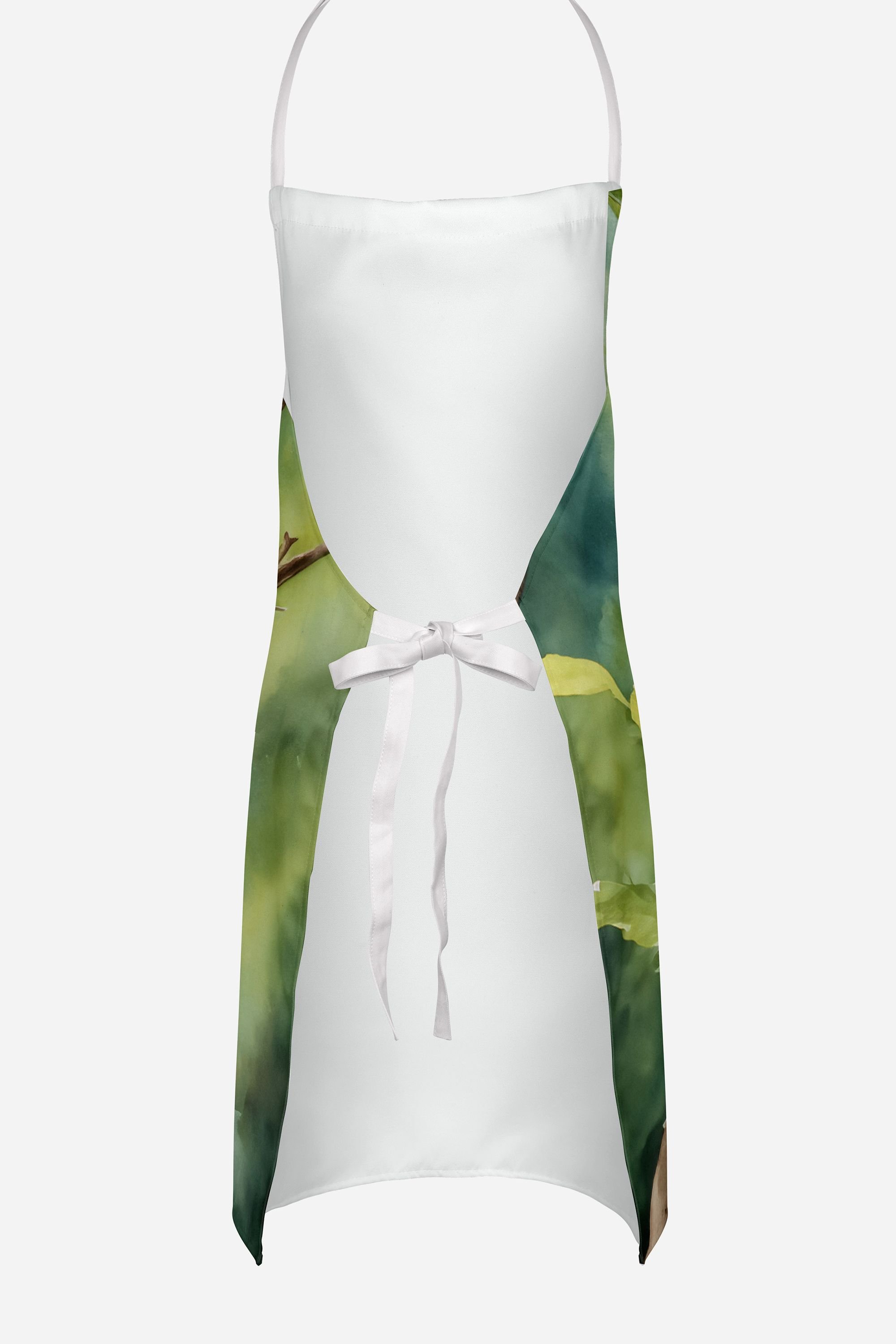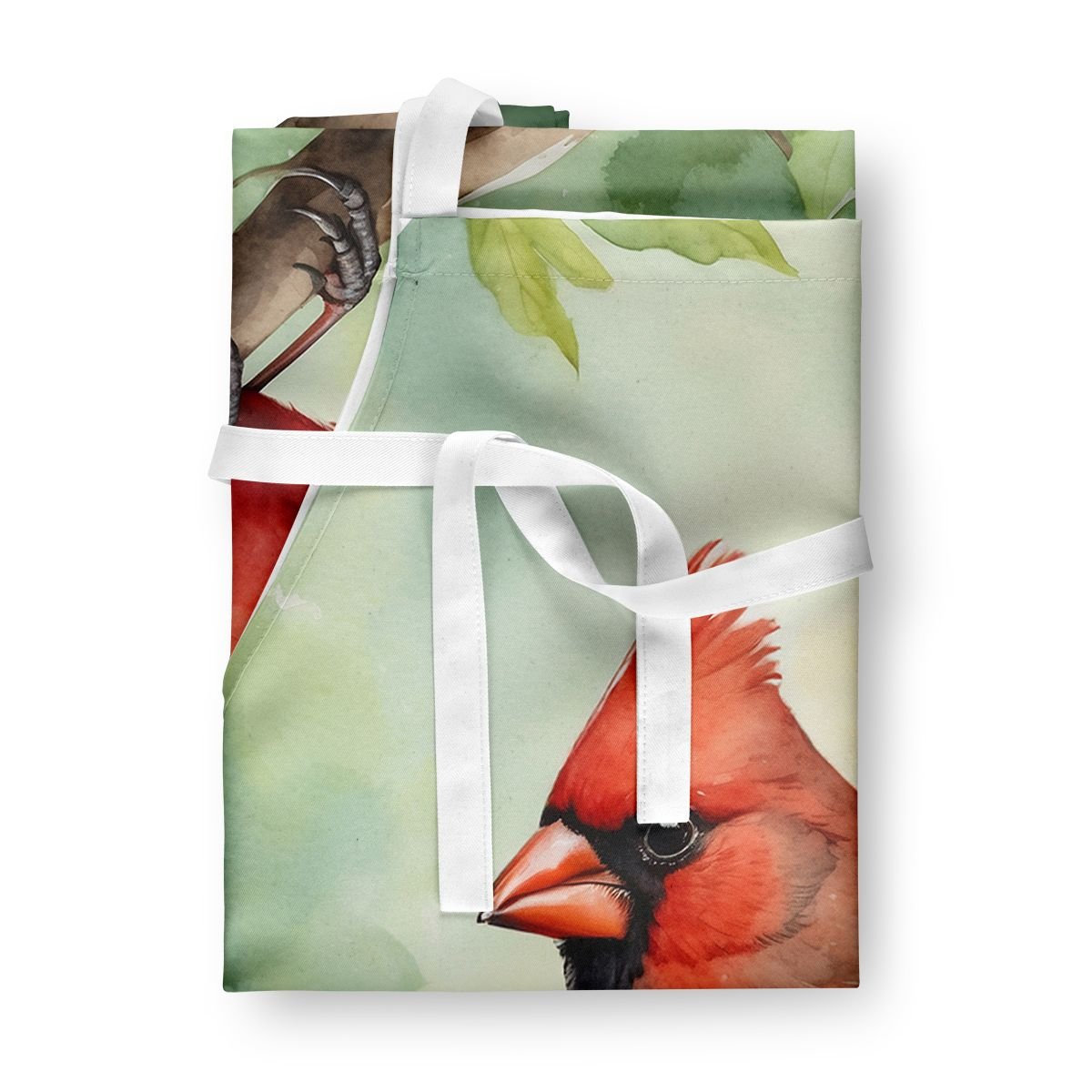 Apron featuring breed specific Northern CardInal artwork. Elevate your cooking, baking, and grilling experiences with our versatile Kitchen or BBQ Apron. This Bib Style apron isn't just limited to culinary activities - it also serves as an excellent baking apron, artist apron, server apron, gardening apron, or even a dog grooming apron. The apron showcases vibrant full-color artwork contributed by one of our talented artists, bringing a dash of style to your daily tasks. With dimensions of approximately 27"W x 30"H, it provides ample coverage to protect your clothing from spills and splashes. Our apron is meticulously crafted from 100% Ultra Spun Polyester, known for its durability and lightweight nature. The apron comes with white tie straps, ensuring a comfortable and adjustable fit for all. It's a perfect choice for kitchen apron enthusiasts, whether you are a woman or a man. Designed for easy maintenance, this apron is fully machine washable. The quick-drying polyester material actively reduces staining, keeping your apron looking fresh and new for longer. Our beautifully designed apron isn't just a functional kitchen accessory - it's a fashion statement in the culinary world!